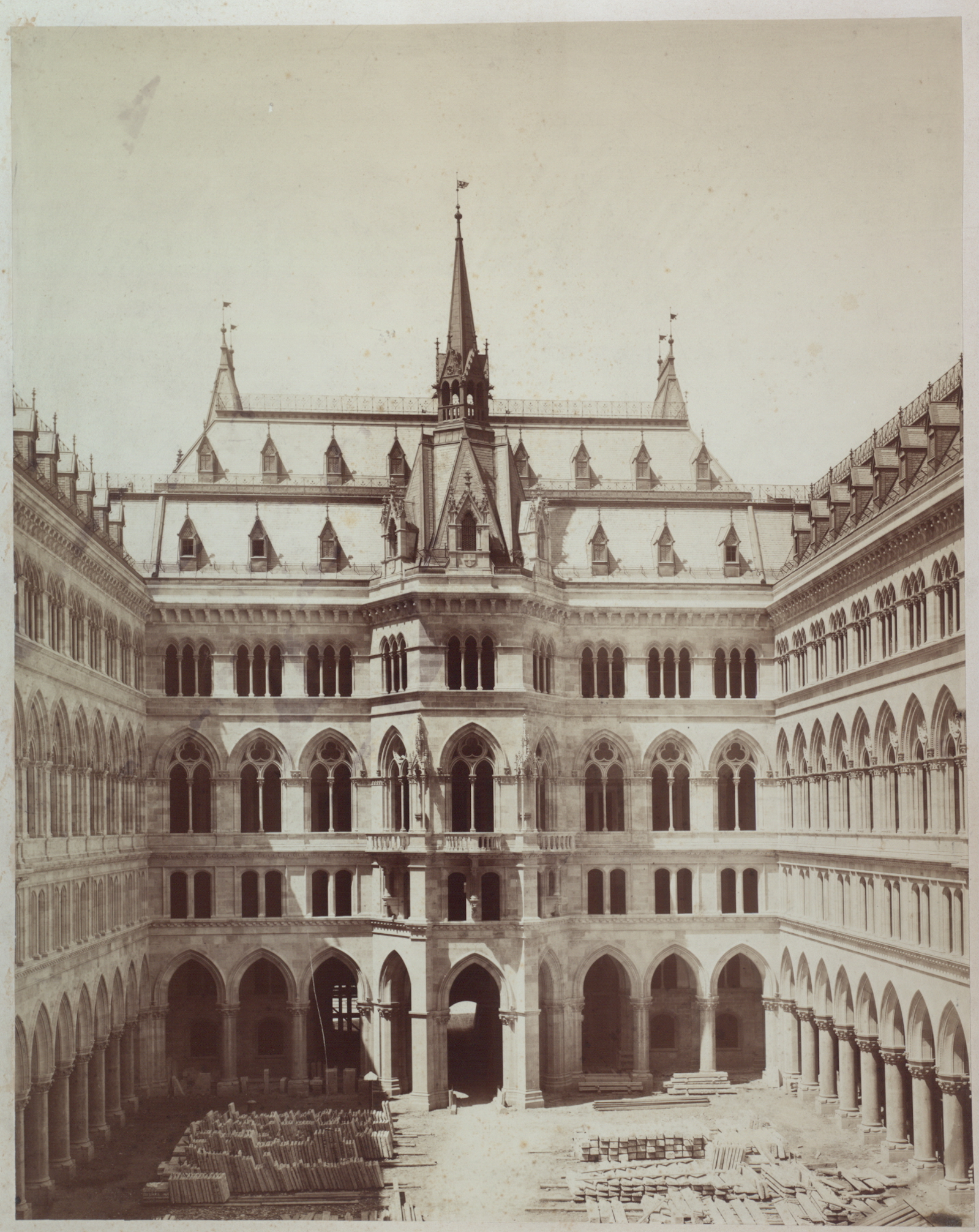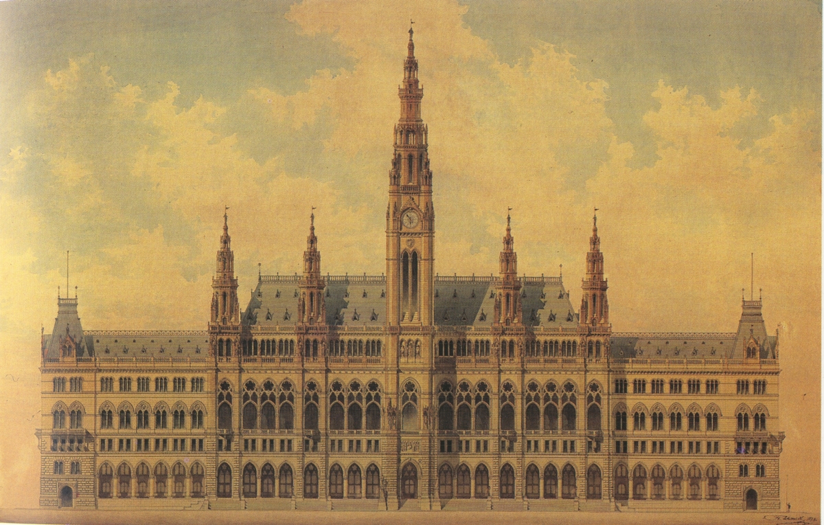 Die Errichtung der Ringstraße brachte 1868 auch eine internationale Ausschreibung für „ein neues, den praktischen Bedürfnissen, den Anforderungen der Kunst und der Würde der ersten Stadt des Reiches entsprechendes Rathhaus“ mit Standort am Parkring, Symbol für ein neues Selbstbewusstsein als