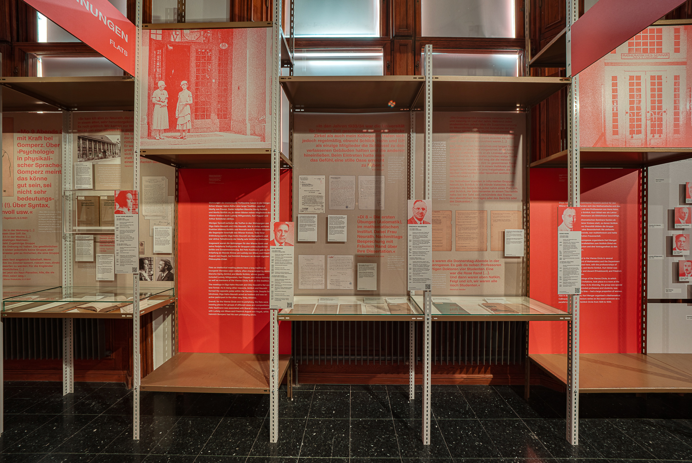 Mit der Programmschrift Wissenschaftliche Weltauffassung. Der Wiener Kreis trat der Diskussionszirkel um den Physiker und Philosophen Moritz Schlick im Jahre 1929 zum ersten Mal an die Öffentlichkeit. Herausgeber dieses Manifests war der „Verein Ernst Mach“, durch den die Ideen des Logischen Empirismus einer breiteren Öffentlichkeit zugänglich gemacht wurden. Erfahrung und formale Logik sollten die vorherrschende metaphysische Philosophie überwinden. Die reaktionären und antisemitischen Strömungen machten die Universität für den Wiener Kreis von Beginn an zu einem prekären Ort, bis Moritz Schlick 1936 dort ermordet wurde. Vereine, Kaffeehäuser und Wohnungen wurden zu wichtigen Treffpunkten, die Orte des „Roten Wien“ zu Wirkungsstätten. Mitglieder des Wiener Kreises arbeiteten an der Universität, an Volkshochschulen und trugen am Pädagogischen Institut der Stadt Wien zur Schulreform bei. Das Rathaus beherbergte die Dauerausstellung des Gesellschafts- und Wirtschaftsmuseums von Otto Neurath von 1927 bis zum Februar 1934. Der Austrofaschismus bedeutete einen großen ersten Bruch, mit dem ‚Anschluss‘ wurde der Wiener Kreis fast vollständig vertrieben. Diese Ausstellung vermittelt die wichtigsten Inhalte des Wiener Kreises und stellt sie anhand seiner Treffpunkte in einen wissenschaftlichen, gesellschaftlichen und politischen Kontext.